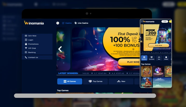 While there is no app, the HTML5 games on the website will resize uniformly to your screen. WinOMania mobile is perfect for quick play sessions no matter where you are.